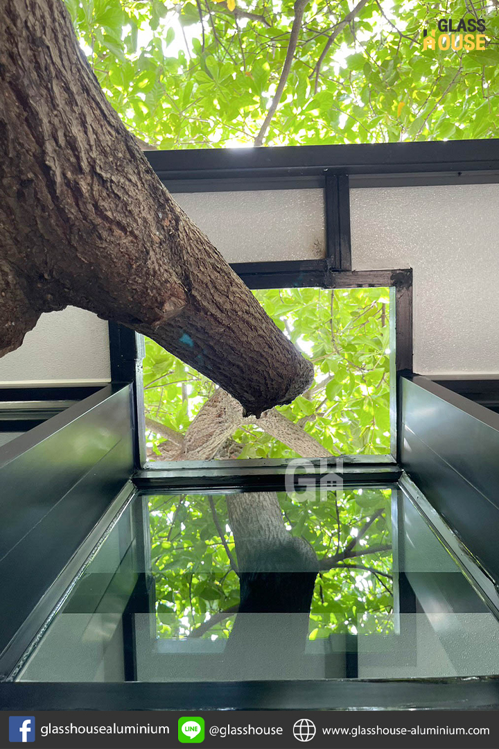 กั้นห้อง/ ต่อเติมห้อง ด้วยประตูบานเลื่อนซ้อนรางล่าง