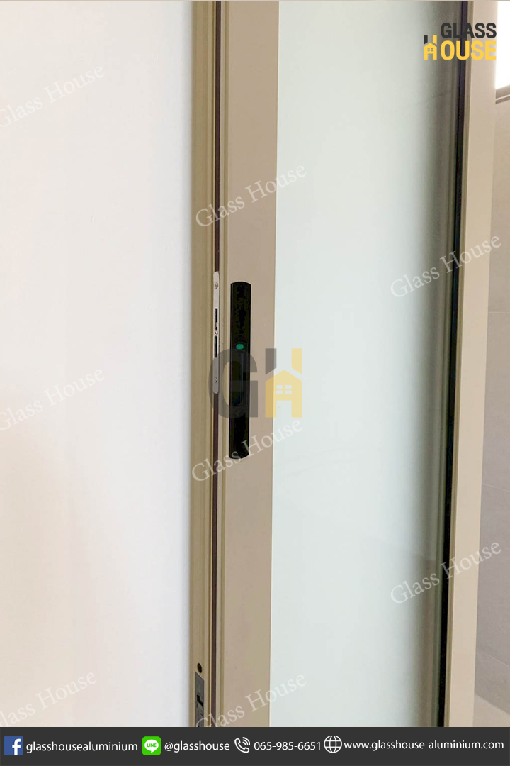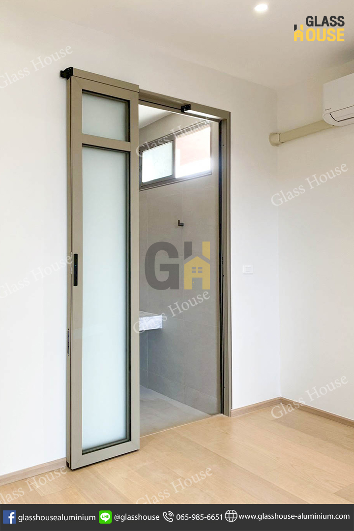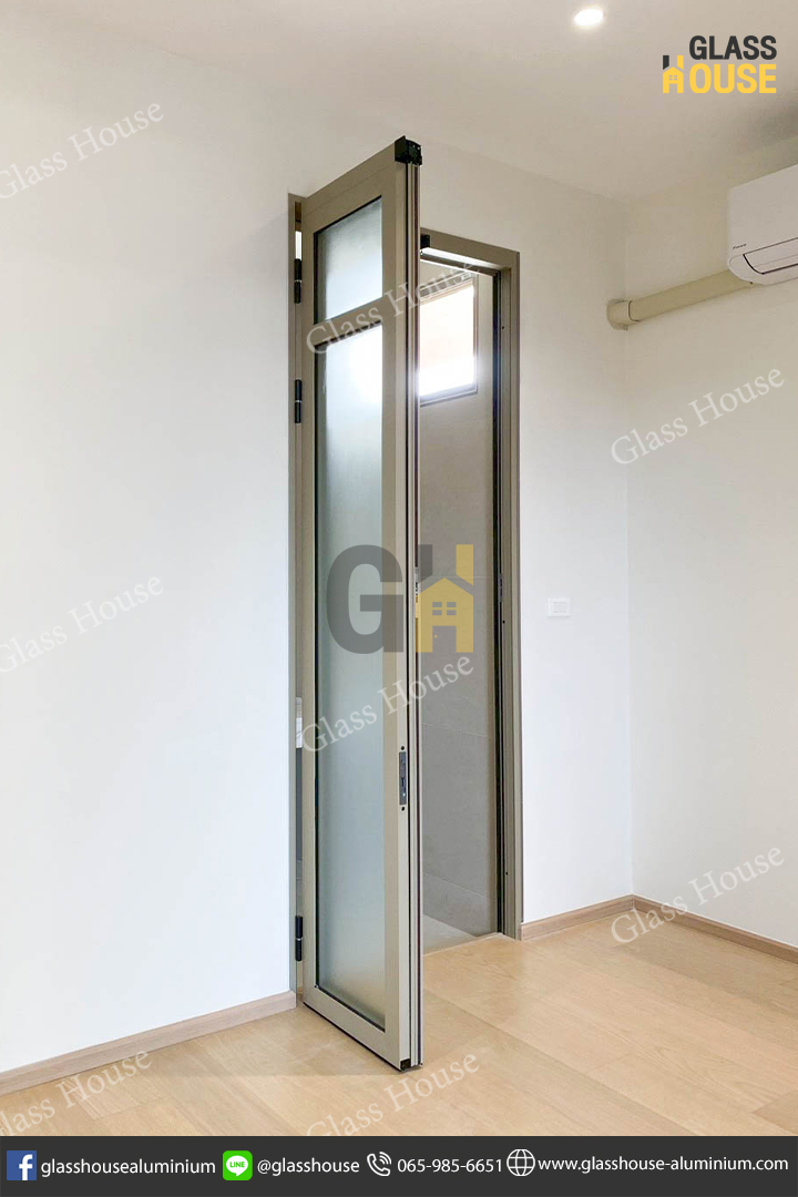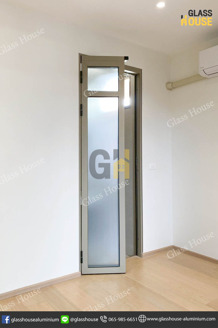 ชุดนี้เป็นอลูมิเนียมสีแชมเปญ + กระจกฝ้า ช่วยพรางสายตา